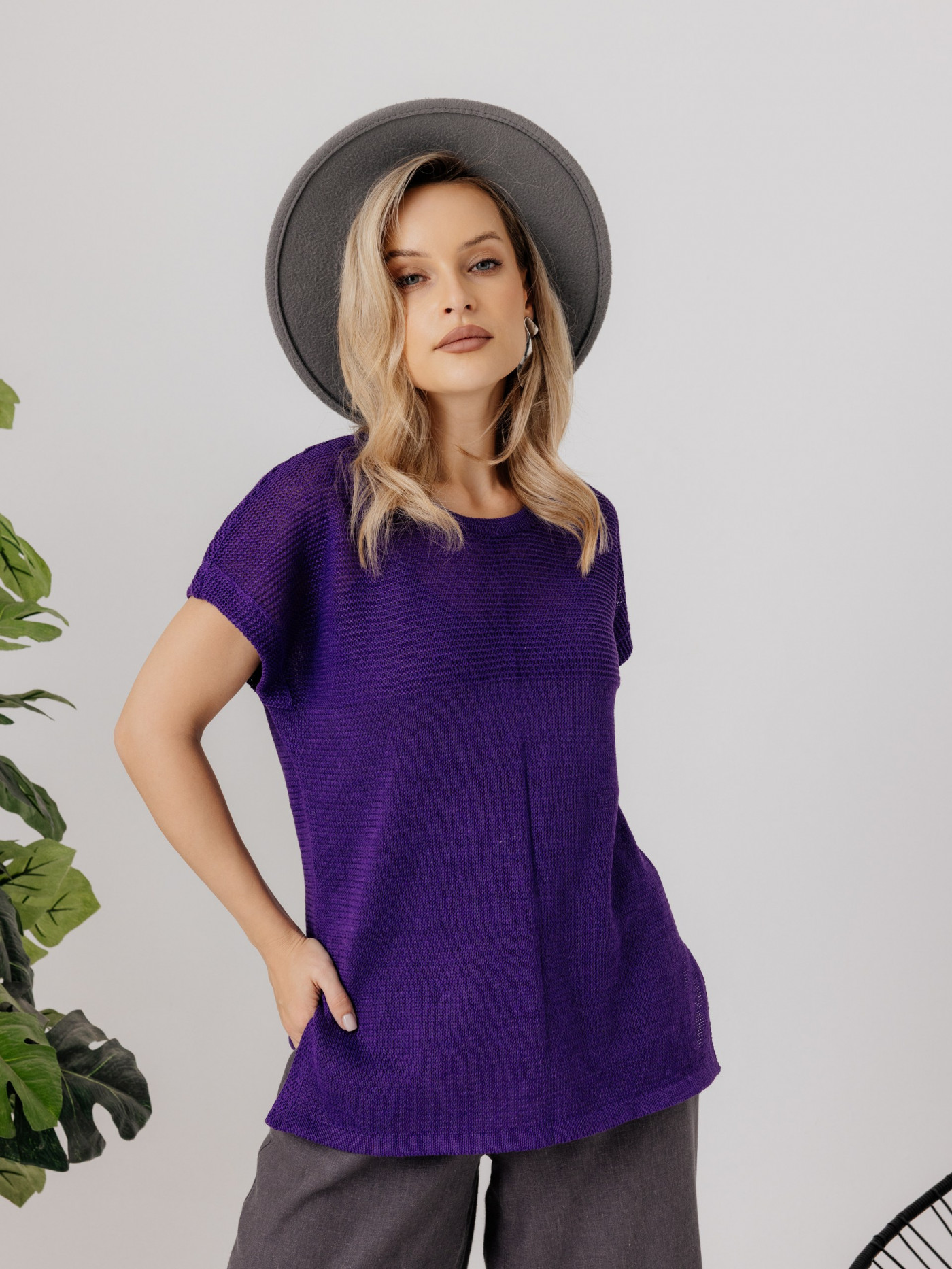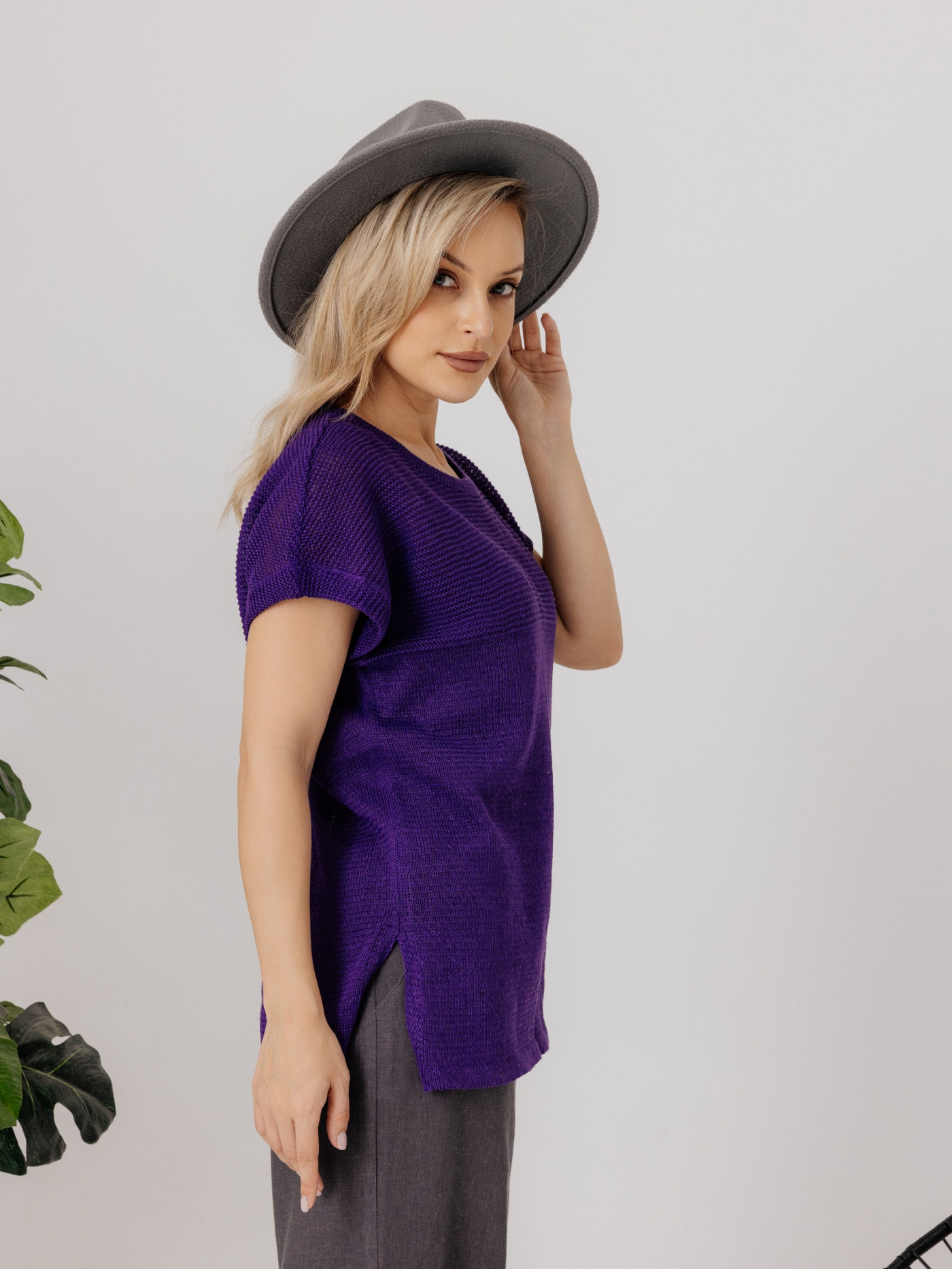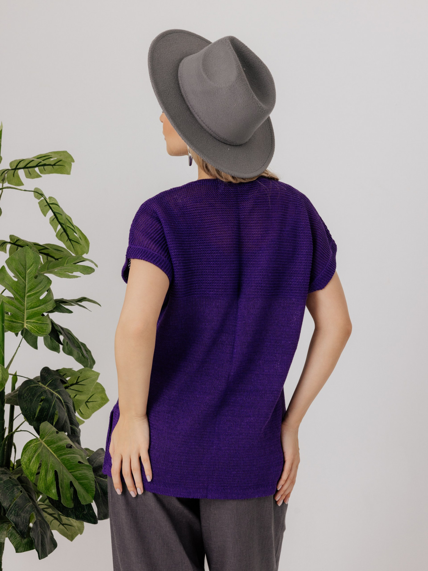 Джемпер из льна 4-290 фиолетовый
