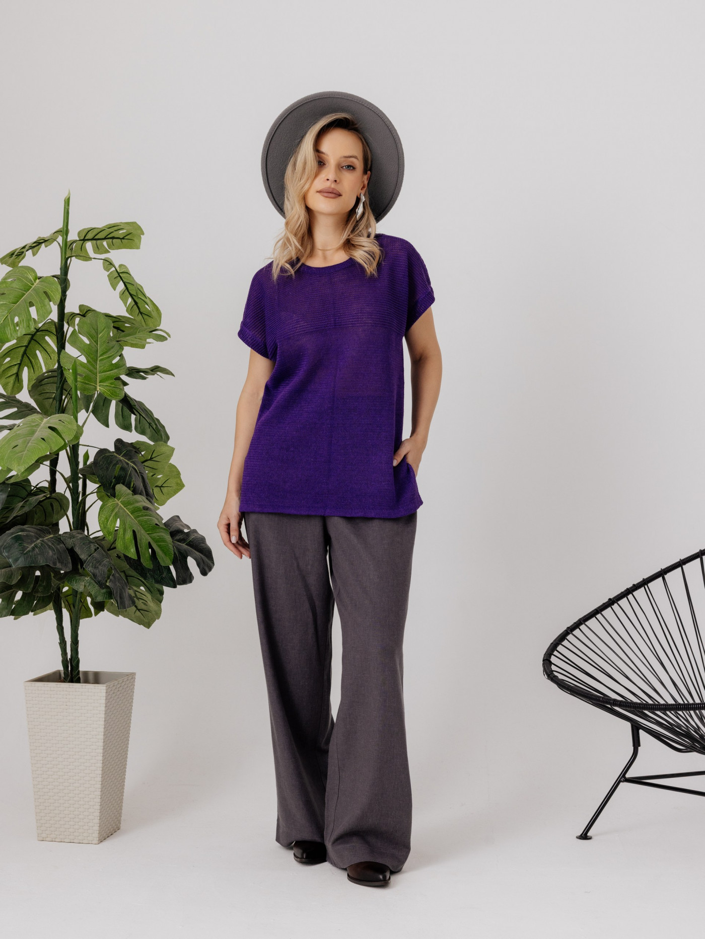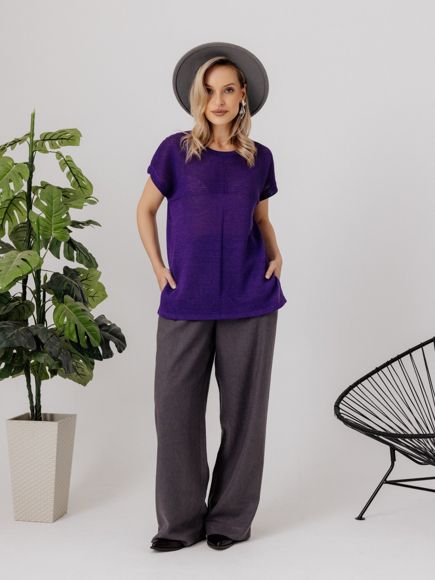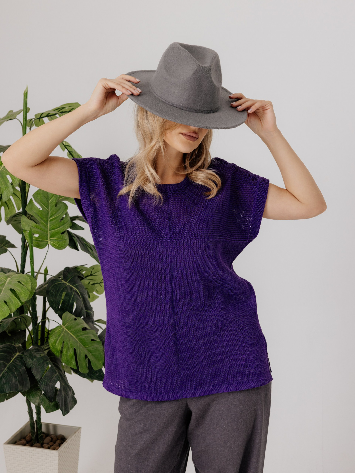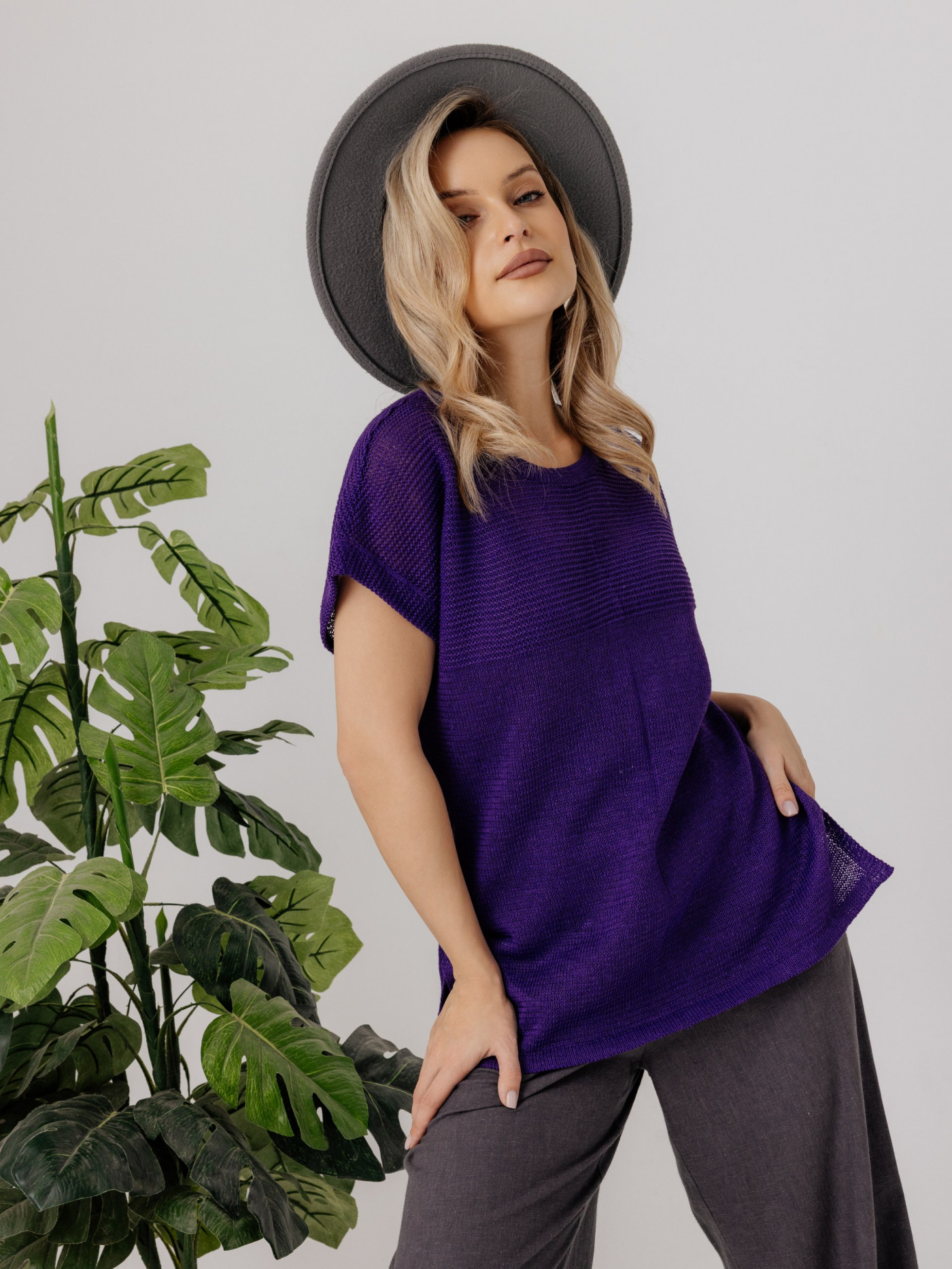 Джемпер из льна 4-290 фиолетовый